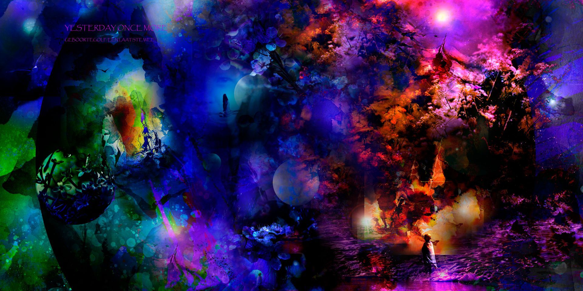 Hierboven als binnenkomer een blad uit mijn boek Reflecties. Het is de stromende waterval aan kleurenstormen. Toch waren er ooit andere tijden. Daar gaan deze vertellingen en vertalingen in woord en beeld over. Over mijn Odyssee. Een verhaal over op weg gaan naar huis en thuis bij mijzelf. De reis en omzwervingen langs ondenkbare gevaren. De onverwachte lokroep van doodlopende wegen, rotondes, afslagen en kruispunten in een donkere, zwarte nacht. Met tijden is het een puzzelrit door een onverlicht labyrint, ondergedompeld in een poel van diepe treurnis, ellende en uitzichtloosheid. De buiten- en binnenwerelden als tegenpolen en die niet altijd de beste reisgenoten maar onlosmakelijk verbonden zijn. Het is een verhaal en uitkomst van heimwee, angst, pijn, verdriet, leegte en een eenzaamheid groter dan het leven. Die tijden zijn voorbij. De eenzaamheid die uiteindelijk de meest trouwe metgezel, bondgenoot en steunpilaar van mijn fundamenten werd. Het is niet alleen een verhaal over op weg gaan, maar vooral ook over zijn en worden van wie, waaruit en waarom je ten diepste bent. De eigen koers die gevaren werd, dwars door het spectrum van een bipolaire orkaan.