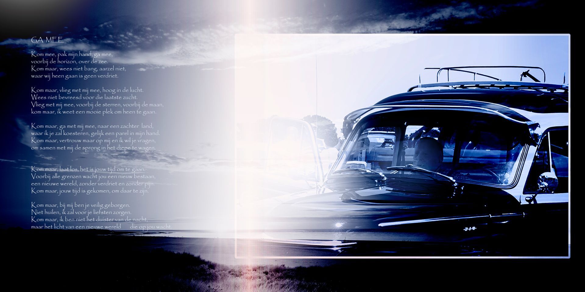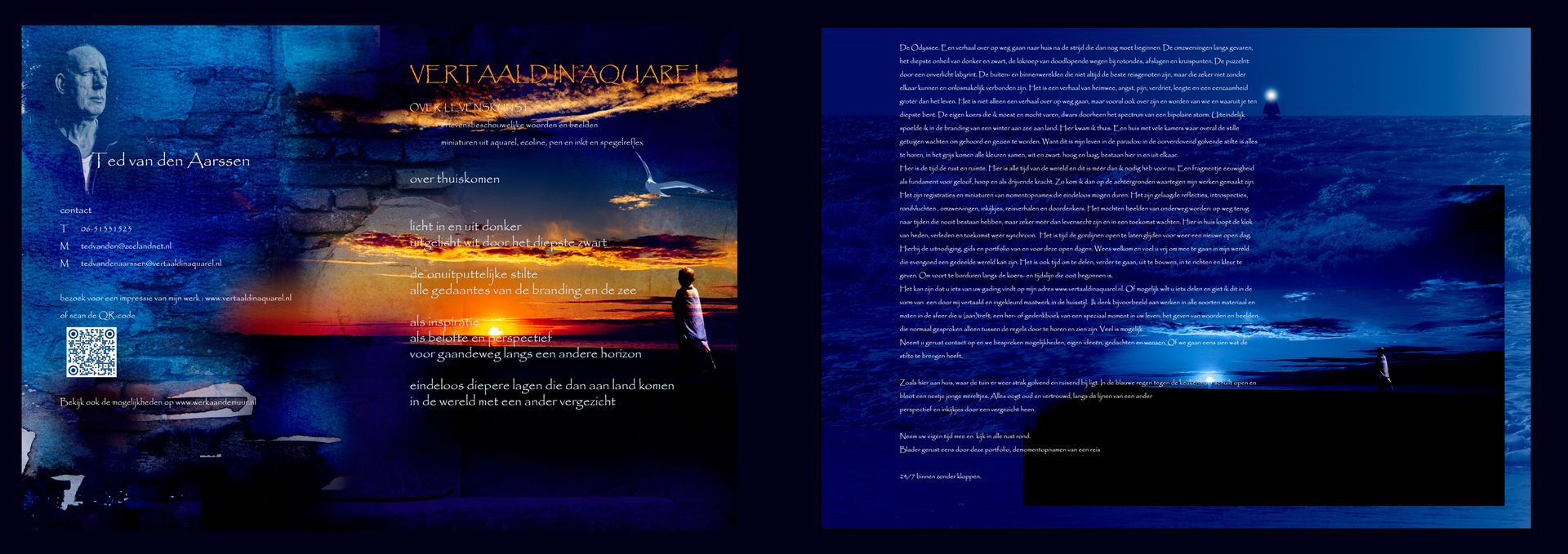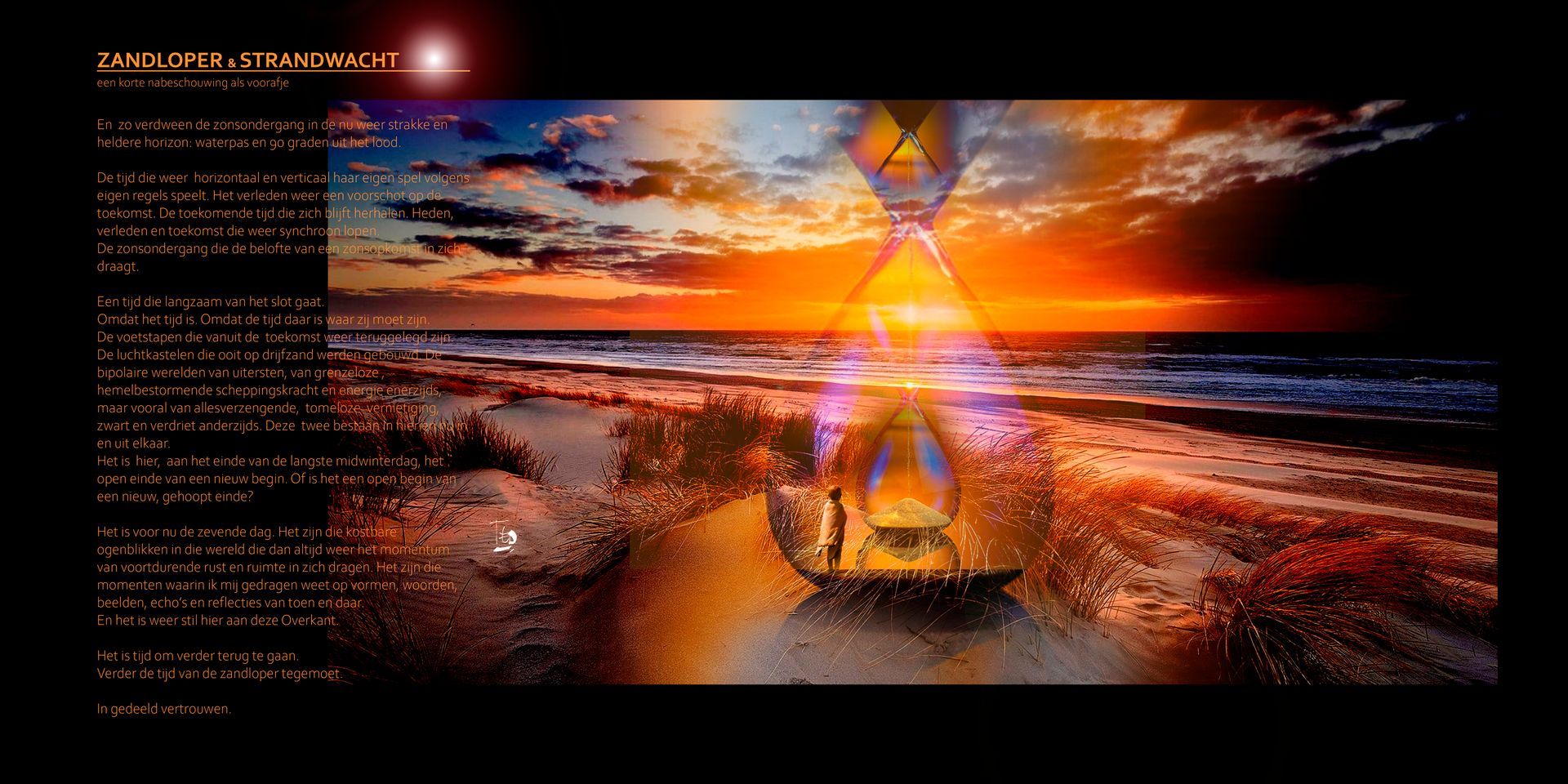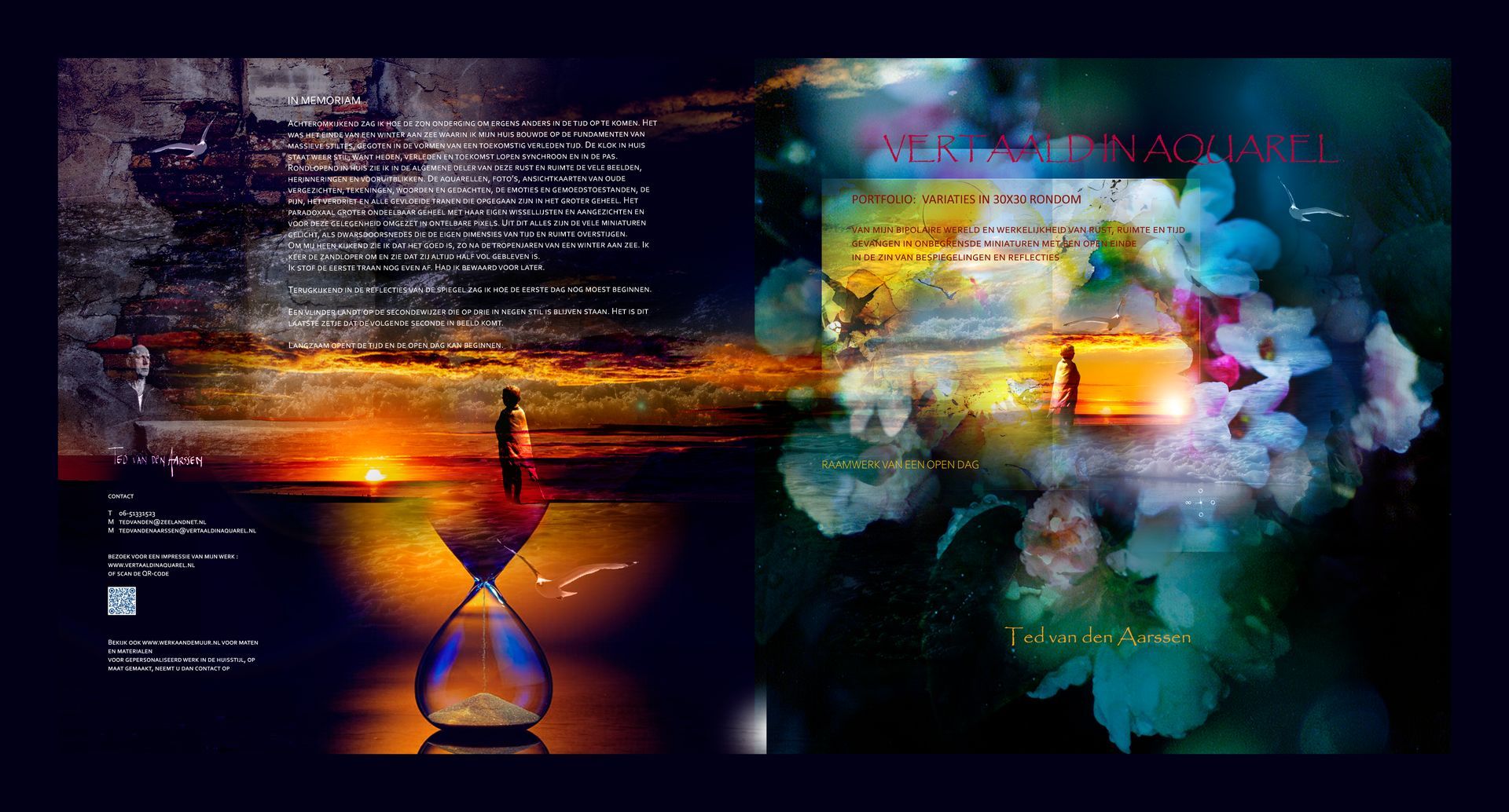 Bundeling fragmenten van een tocht dwars door mijn bipolaire werkelijkheden, op weg naar die nieuwe dag. Een verzameld werk van miniaturen, bedoeld om een indruk achter te laten van mijn werk en huisstijl.